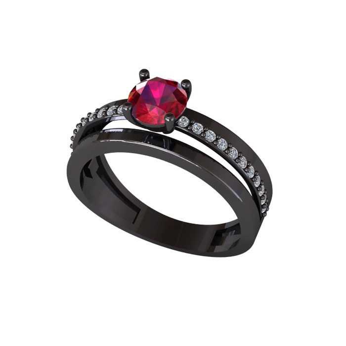 Rodolit garnet ve pırlanta 925 ayar siyah rodyum kaplama gümüş yüzük (0.242 karat)