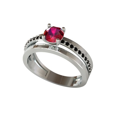 Rodolit garnet ve siyah zirkon 14 ayar beyaz altın yüzük