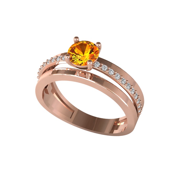 Sitrin ve beyaz zirkon 14 ayar rose altın yüzük