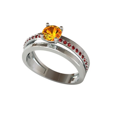 Sitrin ve garnet 18 ayar beyaz altın yüzük