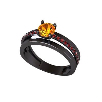 Sitrin ve garnet 925 ayar siyah rodyum kaplama gümüş yüzük