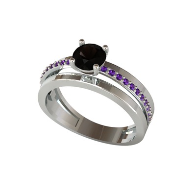 Siyah zirkon ve ametist 925 ayar gümüş yüzük