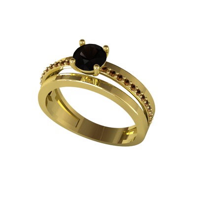 Siyah zirkon ve dumanlı kuvars 925 ayar altın kaplama gümüş yüzük