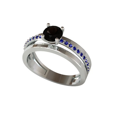 Siyah zirkon ve lab safir 8 ayar beyaz altın yüzük