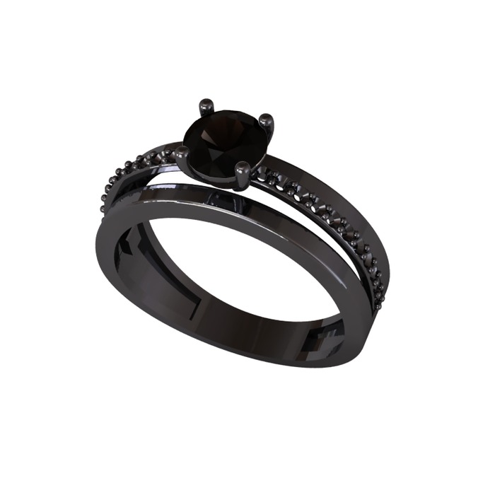 Siyah zirkon ve pembe kuvars 925 ayar siyah rodyum kaplama gümüş yüzük