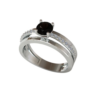 Siyah zirkon ve pırlanta 8 ayar beyaz altın yüzük (0.242 karat)