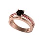 Siyah zirkon ve rodolit garnet 14 ayar rose altın yüzük