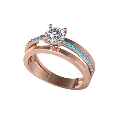 Swarovski ve akuamarin 8 ayar rose altın yüzük