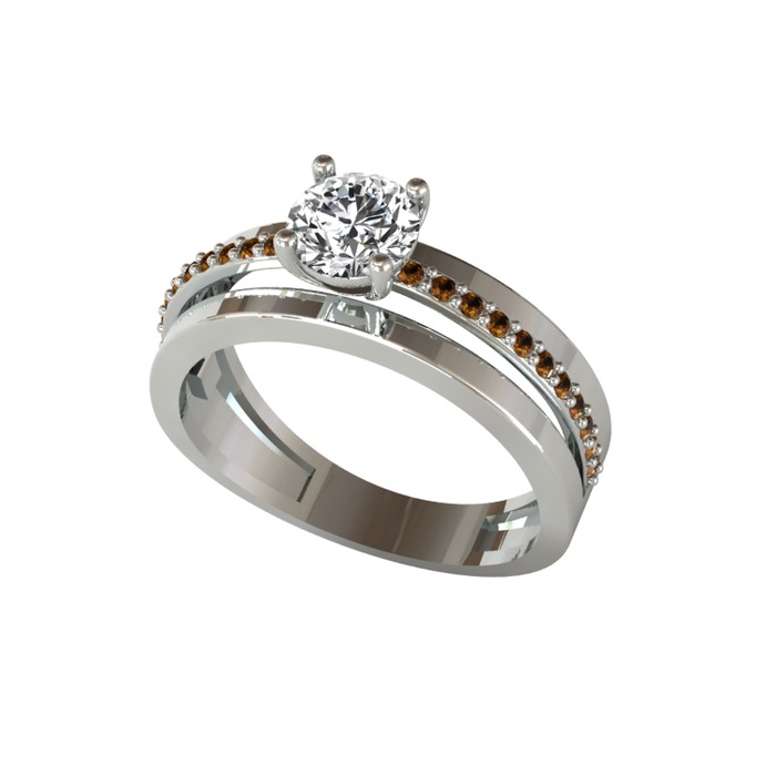 Swarovski ve dumanlı kuvars 14 ayar beyaz altın yüzük