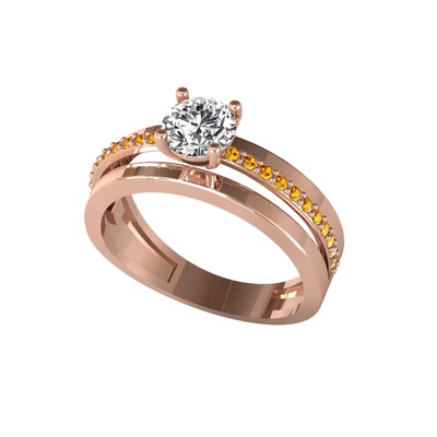 Swarovski ve sitrin 14 ayar rose altın yüzük