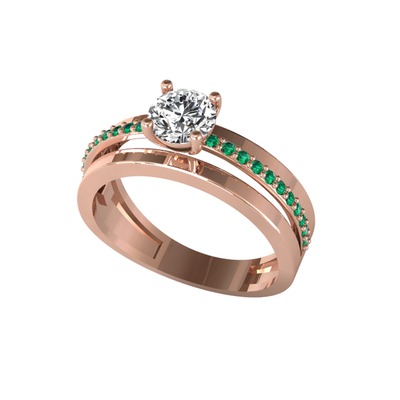 Swarovski ve yeşil kuvars 925 ayar rose altın kaplama gümüş yüzük