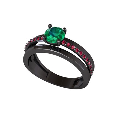 Yeşil kuvars ve rodolit garnet 925 ayar siyah rodyum kaplama gümüş yüzük