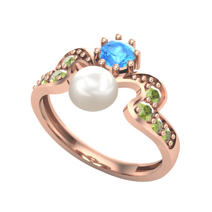 Inci, akuamarin ve peridot 18 ayar rose altın yüzük