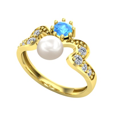 Inci, akuamarin ve swarovski 8 ayar altın yüzük