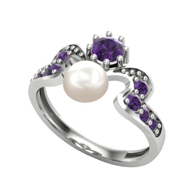 Inci ve ametist 8 ayar beyaz altın yüzük