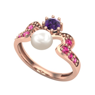 Inci, ametist ve rodolit garnet 925 ayar rose altın kaplama gümüş yüzük