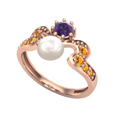 Inci, ametist ve sitrin 18 ayar rose altın yüzük