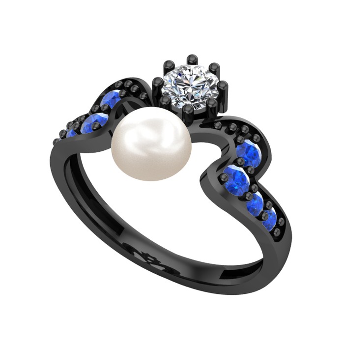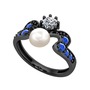 Inci, beyaz zirkon ve lab safir 925 ayar siyah rodyum kaplama gümüş yüzük