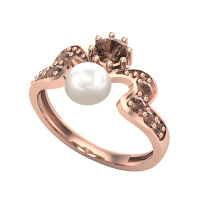 Inci ve dumanlı kuvars 8 ayar rose altın yüzük