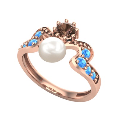 Inci, dumanlı kuvars ve akuamarin 925 ayar rose altın kaplama gümüş yüzük