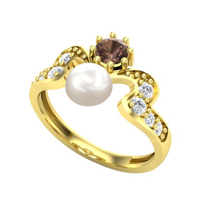 Inci, dumanlı kuvars ve pırlanta 925 ayar altın kaplama gümüş yüzük (0.48 karat)