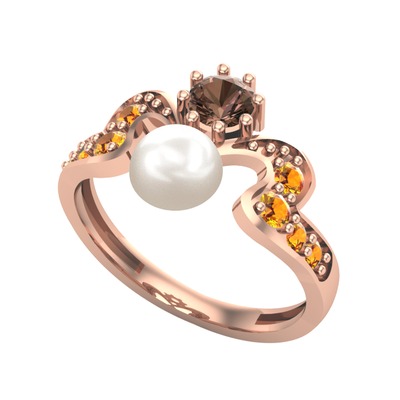 Inci, dumanlı kuvars ve sitrin 925 ayar rose altın kaplama gümüş yüzük