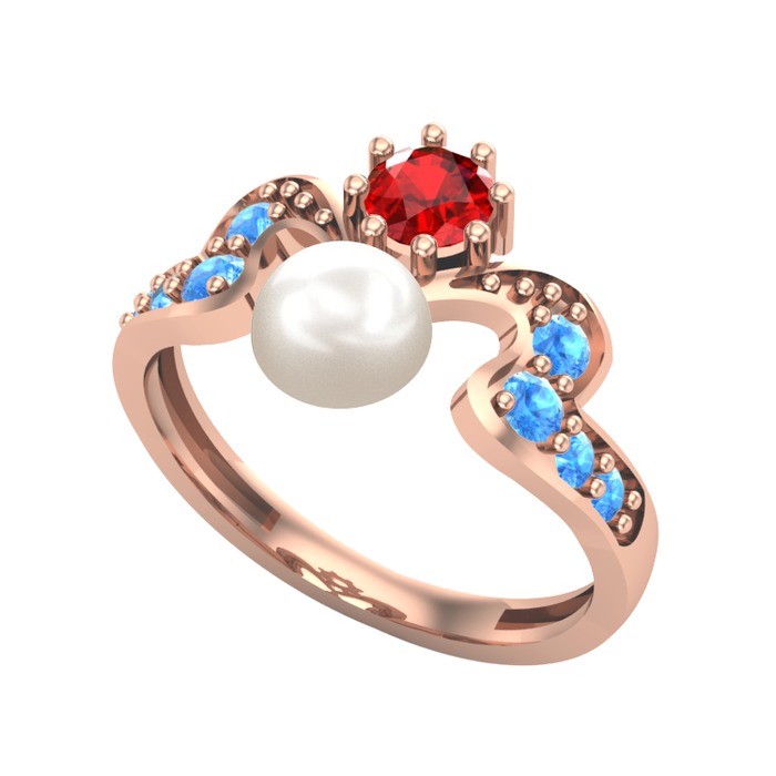 Inci, garnet ve akuamarin 925 ayar rose altın kaplama gümüş yüzük