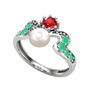 Inci, garnet ve kök zümrüt 18 ayar beyaz altın yüzük