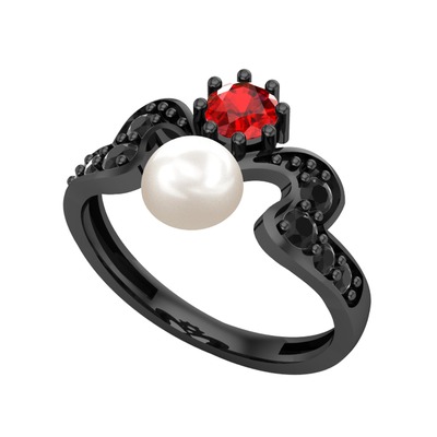 Inci, garnet ve siyah zirkon 925 ayar siyah rodyum kaplama gümüş yüzük