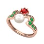 Inci, garnet ve yeşil kuvars 8 ayar rose altın yüzük