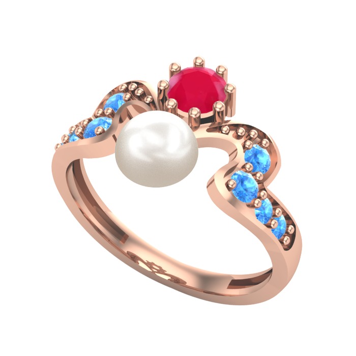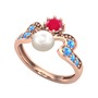 Inci, kök yakut ve akuamarin 14 ayar rose altın yüzük