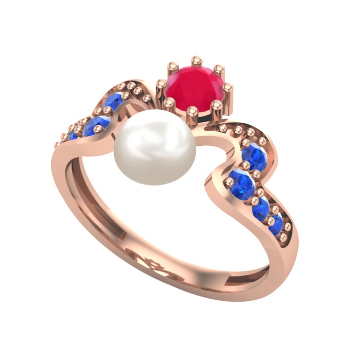 Inci, kök yakut ve lab safir 14 ayar rose altın yüzük