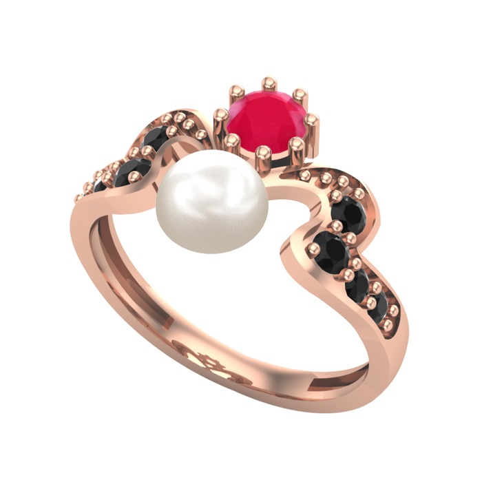 Inci, kök yakut ve siyah zirkon 8 ayar rose altın yüzük