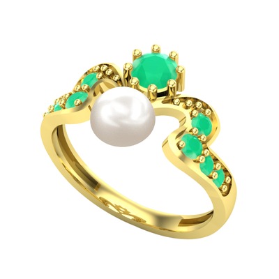 Inci ve kök zümrüt 18 ayar altın yüzük