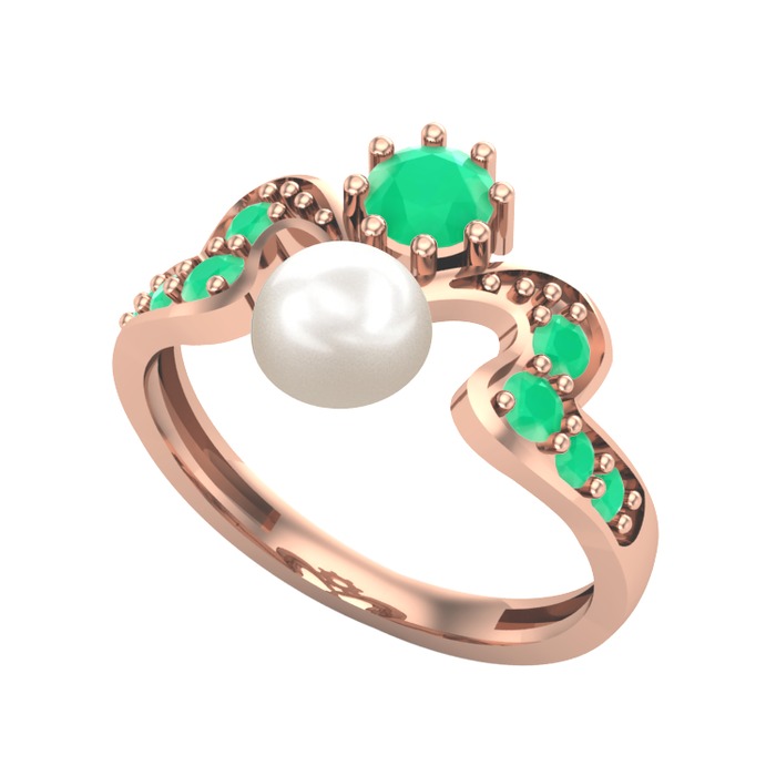 Inci ve kök zümrüt 18 ayar rose altın yüzük