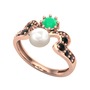 Inci, kök zümrüt ve siyah zirkon 8 ayar rose altın yüzük