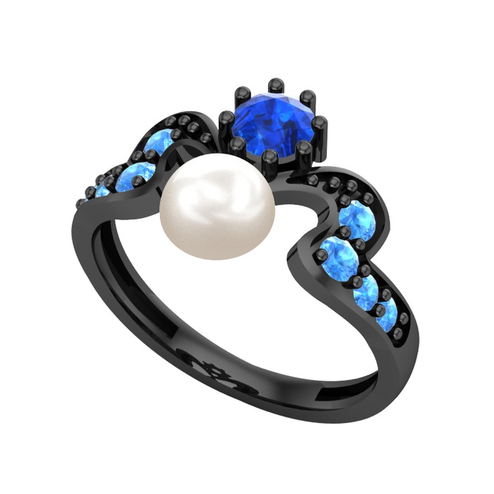 Inci, lab safir ve akuamarin 925 ayar siyah rodyum kaplama gümüş yüzük