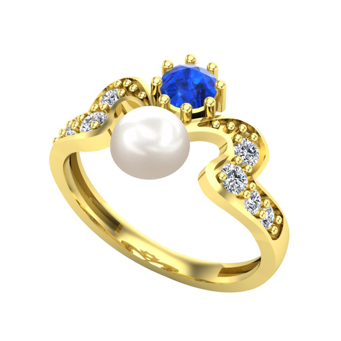 Inci, lab safir ve beyaz zirkon 925 ayar altın kaplama gümüş yüzük