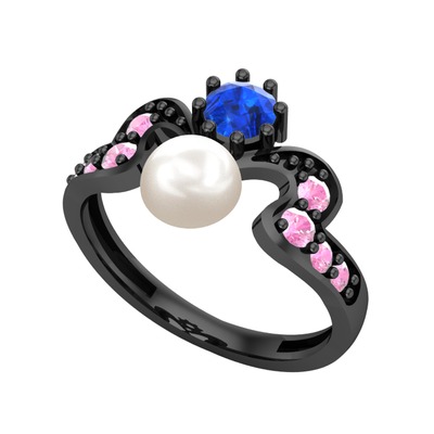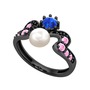 Inci, lab safir ve pembe kuvars 925 ayar siyah rodyum kaplama gümüş yüzük