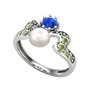 Inci, lab safir ve peridot 8 ayar beyaz altın yüzük