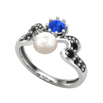 Inci, lab safir ve siyah zirkon 18 ayar beyaz altın yüzük