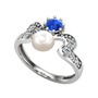 Inci, lab safir ve swarovski 18 ayar beyaz altın yüzük