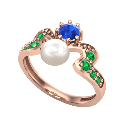 Inci, lab safir ve yeşil kuvars 8 ayar rose altın yüzük