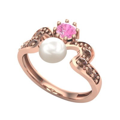 Inci, pembe kuvars ve dumanlı kuvars 925 ayar rose altın kaplama gümüş yüzük