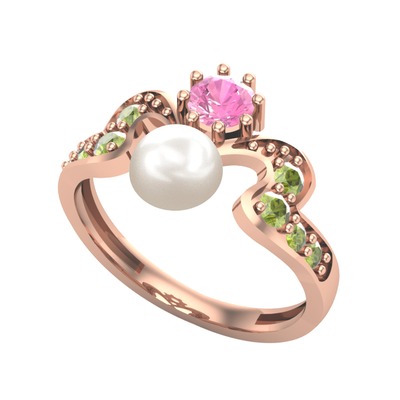 Inci, pembe kuvars ve peridot 18 ayar rose altın yüzük
