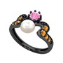 Inci, pembe kuvars ve sitrin 925 ayar siyah rodyum kaplama gümüş yüzük