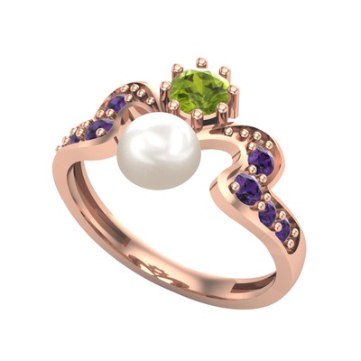 Inci, peridot ve ametist 14 ayar rose altın yüzük