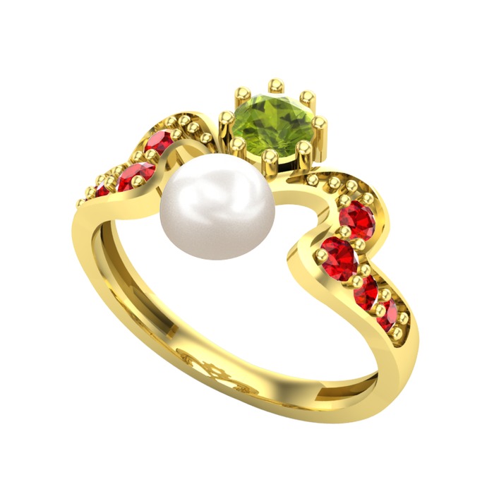 Inci, peridot ve garnet 8 ayar altın yüzük