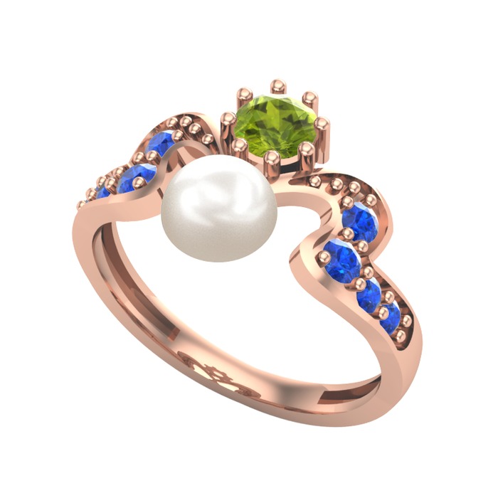 Inci, peridot ve lab safir 14 ayar rose altın yüzük