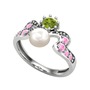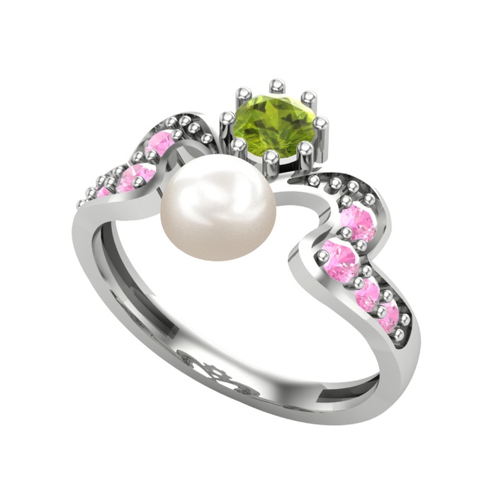 Inci, peridot ve pembe kuvars 8 ayar beyaz altın yüzük